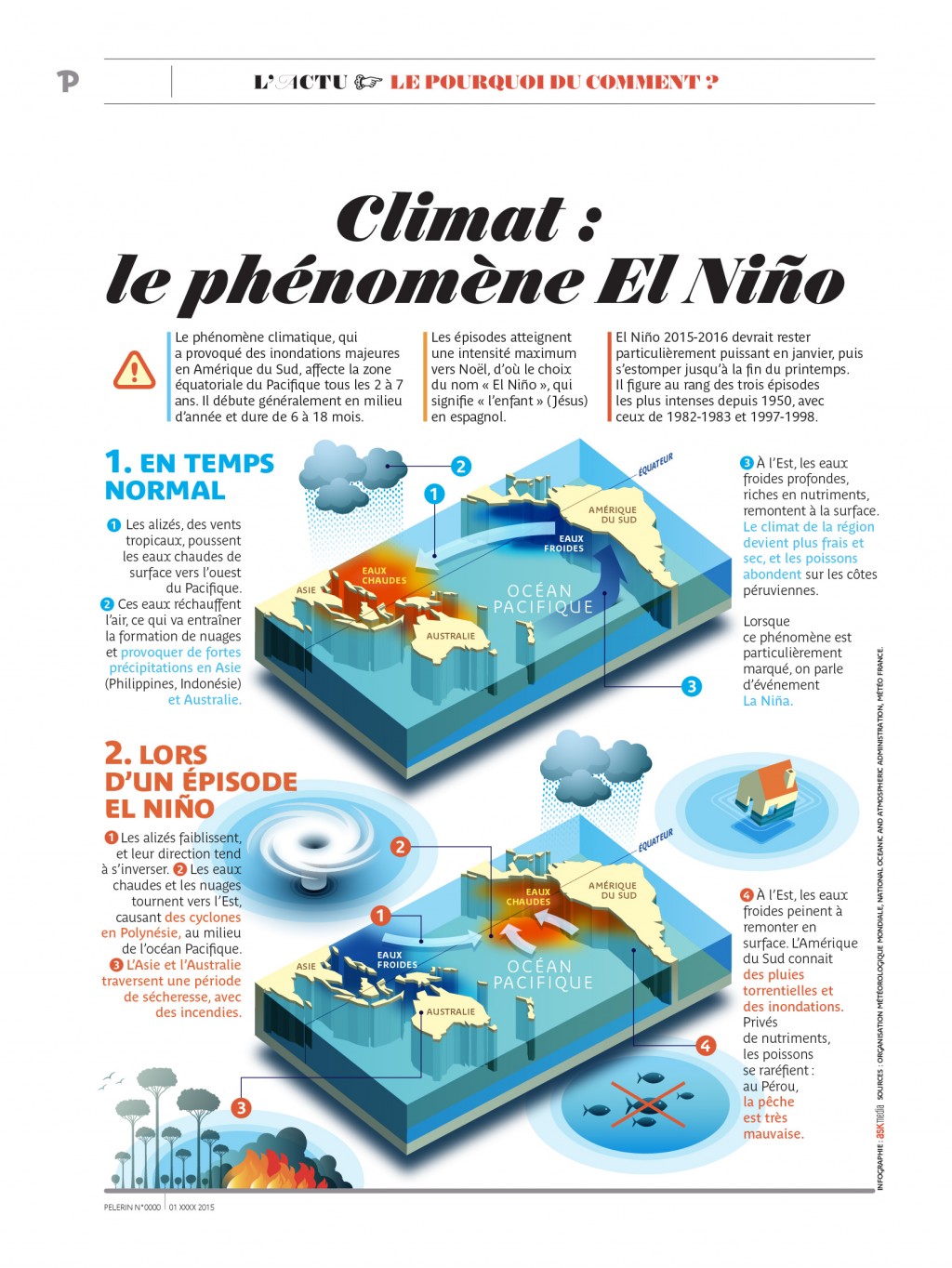 De 2015 à 2018, Ask Media a réalisé les infographies de la rubrique “Le pourquoi du comment” du magazine Pèlerin. Ces infographies visaient à expliquer, en une page, un élément fort de l’actualité : Comment fonctionnent les élections américaines, quels sont les enjeux de l’indépendance de la Catalogne, etc.